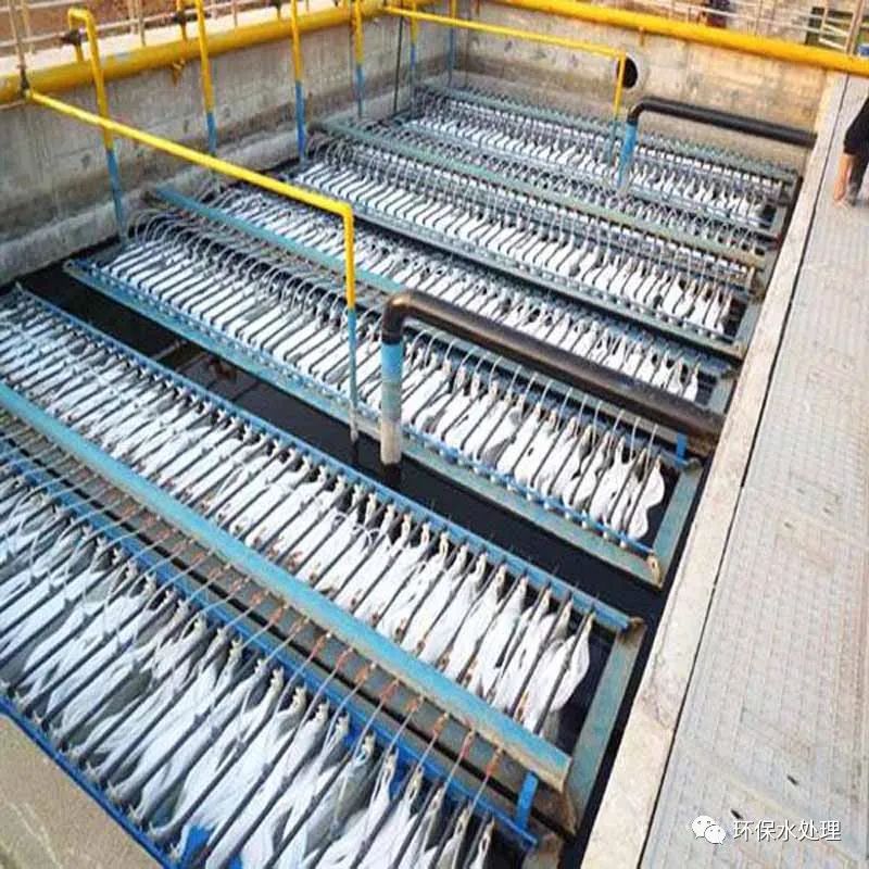 MBR膜池操作规程MBR池利用膜对生化反应池内的含泥污水进行过滤,实现泥水分离。一方面,膜截留了反应池中的微生物,使池中的活性污泥浓度大增加,达到很高的水平,使降解污水的生化反应进行得更迅速更彻底,另一方面,由于膜的高过滤精度,保证了出水清澈透明,得到高质量的产水。 膜区设置MBR膜组件系统及配套的出水、反洗、清洗、吹扫、吊装等系统。MBR膜区内的吹扫(曝气)有两个用途,一是用于膜组件周围的气水振荡,保持膜表面清洁,二是为提供生物降解所需要的氧气。生物降解后的水在滤液自吸泵的抽提作用下通过MBR膜组件,滤过液经由MBR集水管汇集送到清水池。通过膜的高效截留作用,全部细菌及悬浮物均被截流在膜池中,可以有效截留硝化菌,使硝化反应顺利进行,有效去除氨氮;同时可以截留难于降解的大分子有机物,延长其在反应器中的停留时间,使之得到最大限度的降解。MBR膜组件下部设置专用的吹扫系统,吹扫抖动膜元件,以缓解膜元件周边的污泥浓度累积。剩余污泥通过膜区剩余污泥泵定期排出,可控制系统内活性污泥的浓度及污泥龄。 同时为了保证MBR膜组件有良好的水通量,能持续、稳定地出水,使用了专有的清水反洗、化学反洗及化学清洗程序对膜组件进行定时清洗。 操作及控制 控制要点: (1) 控制好氧池MLSS稳定在5~6L时,可以打开进水阀,将曝气池中的泥水混合物溢流入膜池。 (2) 污水进入膜池前,确认要进行曝气操作的膜池主管阀门处于关位,支管上所有与膜组件相连的阀门处于开位,其它未安装膜组件的阀门处于关位。开启一台风机对膜池曝气,防止膜池中的曝气管堵塞,然后膜池方可进水。 (3) 进水前确认已安装膜组件的膜池的前后闸门全部打开,另外两个廊道闸门关闭,关闭配水渠、污泥渠的连通闸门。 (4) 调整鼓风机风量,将池内的溶氧量控制在2mg/L以上。 (5) 确认所有膜廊道曝气量均匀,所有膜箱曝气良好,并没有污泥累积在膜丝上。 运行时应注意的问题 (1)温度污水温度随气温会有变化,可适当投入接种污泥,并控制较低的运行负荷(污泥)。当原污水温度<12℃时,生化系统的硝化作用会降低,膜系统出水氨氮指标可能会超标。(2) 曝气量 污泥培养初期,由于污泥尚未大量形成,产生的污泥絮凝性能不太好,还处于离散状态,加之污泥浓度较低,微生物易处于内源呼吸状态,因此曝气量不能太大。控制在设计正常值的1/2 左右即可。否则,絮状污泥不易形成。 (3) 监测与检查 污泥培养过程中,不仅要观测曝气池混合液的SV 与MLSS,还应随时观察污泥的生物相,了解菌胶团及指示微生物的生长情况,以便根据情况对培养过程进行必要的调整。 (4) 回流污泥量的控制 回流污泥系统的控制采用回流比恒定,当入流污水量变化时,回流污泥量相应做调整。采用这种方法,当剩余污泥排放量基本不变的情况下,可保持MLSS、F/M以及曝气池内泥位基本恒定,而不随入流污水量Q 的变化而变化,从而保证相对稳定的处理效果。 (5) 剩余污泥排放量的控制 由于本工程采用MBR工艺,来水水质较好,产泥量较少。随着系统的稳定运行,系统内污泥量会逐渐增加,污泥浓度需要根据工艺调整需求进行调节。每日排放的污泥量、排泥时间与进水污染物浓度、进水水量有密切相关,应根据工艺分析后进行。 MBR系统的剩余污泥排放直接由膜池排放,浓度约可达到8000~12000mg/L。与传统工艺二沉池排泥相比,其脱水性能、沉降性能均稍差,其脱泥系统运行参数,包括进泥量、加药量、调理强度与时间等均需要灵活调整,保证稳定运行。 配套设备操作简述 1设备描述:设备间主要为放置膜组件出水系统等设备。另外设置了其他辅助系统,如消毒系统、压缩空气系统、膜清洗系统、真空系统、臭氧消毒系统等,用以保证系统的正常启动运行及出水水质的稳定。 设置渗透抽吸泵,单个廊道对单台泵,如果水量小,可减少廊道对应的泵的开启台数。 设置真空泵,用于帮助渗透抽吸泵启动。 设置压缩空气系统一套,作为再生水厂气动阀的气源。 膜清洗系统分为两部分:反向清洗系统和在线清洗系统。几个膜廊道共用1台反冲吸泵。反向清洗系统包括次氯酸钠储罐、次氯酸钠加药泵、次氯酸钠卸料泵;在线清洗系统包括草酸(或柠檬酸)化料器、草酸(或柠檬酸)储罐、草酸(或柠檬酸)加药泵。两个系统的加药泵均建议1用1备,如储罐内药液浓度过低,也可2台同时启动。 2控制目标: 各系统工作稳定、能够自动运行; 膜系统工作良好,流量-负压稳定,能够按设定流量运行; 各气动阀、液位计、浊度仪、流量计等仪表工作正常、准确; 膜清洗系统正常运行并有效; 3 相关参数: 各廊道产水设定值;产水负压限制<-30kPa;出水浊度<1.0NTU; 各廊道产水/反洗时间:9min/1min; 反洗流量/压力:50L/m2/h/<0.2Mpa;达到40kPa需反洗; 膜药洗系统运行:1天1次加药反洗,500-1000ppm(有效氯浓度)次氯酸钠,1月-3月1次化学清洗洗,500-2000ppm(有效氯浓度)次氯酸钠; 4 控制要点: (1) 真空泵操作 真空泵是用来帮助渗透抽吸泵完成首次启动或正常工作过程中管道内产生气体导致流量降低时的抽真空。当现场操作满足下面条件中任何一条时启动抽真空:1、MBR系统开始投入运行,首先启动抽真空程序。2、气液分离罐内持续检测到液位低于“低液位”时,抽真空泵启动,对应的抽真空气动蝶阀打开,产水气动调节阀关闭,进行抽真空。 抽真空结束信号:检测