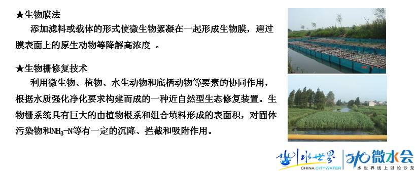 (1)生物与生态法 包括有植物净化、微生物强化、生物膜法等。