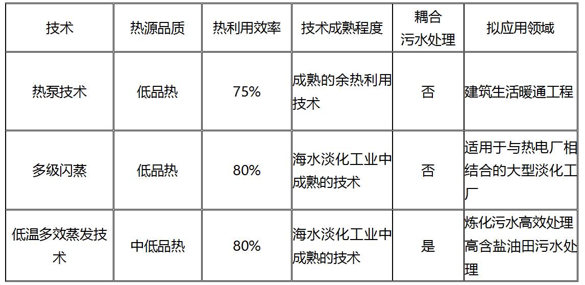低温多效蒸发工艺流程图 低温多效蒸发的技术优势体现在如下几个方面: 1.由于操作温度低,可避免或减缓设备的腐蚀和结垢。 2.由于操作温度低,可充分利用电厂和化工厂的低温废热,对低温多效蒸发技术而言,50℃-70℃的低品位蒸汽均可作为理想的热源,可大大减轻抽取背压蒸汽对电厂发电的影响。 3.进料含盐水的预处理更为简单。系统低温操作带来的另一大好处是大大的简化了含盐水的预处理过程。含盐水进入低温多效装置之前只需经过筛网过滤和加入少量阻垢剂就行,而不象多级闪蒸那样必须进行加酸脱气处理。 4.系统的操作弹性大。在高峰期,该淡化系统可以提供设计值110%的产品水;而在低谷期,该淡化系统可以稳定地提供额定值40%的产品水。 5.系统的动力消耗小。低温多效系统用于输送液体的动力消耗很低,只有0.9- 1.2kWh/m3左右。如此可以大大的降低淡化水的制水成本,这一点对于电价较高的地区尤为重要。 6.系统的热效率高。30余度的温差即可安排12以上的传热效数,从而达到10左右的造水比。 7.系统的操作安全可靠。在低温多效系统中,发生的是管内蒸汽冷凝而管外液膜蒸发,即使传热管发生了腐蚀穿孔而泄漏,由于汽侧压力大于液膜侧压力,浓盐水不会流到产品水中,充其量只会产生蒸汽的少量泄漏而影响造水量。 炼化企业有大量富裕的低温余热待利用,经过低温多效蒸发技术处理后的淡水可回用至多个工艺环节,如循环水补水等,实现污水的资源化利用的同时,实现了低温余热的高效利用。 因此,将低温多效蒸发技术引入炼化企业水处理行业,利用其高造水比、处理水质好等优点,可以实现低温余热利用和炼化污水深度处理的有机结合,并解决炼化污水中高含盐污水脱盐难、能耗高等问题。 低温热利用技术对比表 如表所示,较常规热泵技术和多级闪蒸技术,低温多效蒸发在热利用率、技术工艺耦合污水处理等方面具有明显优势,代表了相关技术领域的发展方向,是开展余热利用和污水处理耦合技术的重点方向。 |