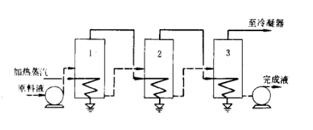 各效都加入料液,又都引出完成液。此流程用于饱和溶液的蒸发(或溶液浓度较高)。各效都有晶体析出,可及时分离晶体。此法还可用于同时浓缩两种或多种水溶液。 平流加料工艺流程