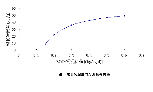 △ X=Y(So-Se)Q-KdVXv (1) △ X — 每日增长的挥发性污泥量(VSS),kg/d; (So-Se)Q — 每日有机底物降解量(BOD5),kg/d; VXv — 曝气池混合液中挥发性污泥总量,kg/d; Y — 产率系数; Kd —活性污泥微生物内源呼吸自身氧化率,d-1; So、Se — 进水、出水BOD5浓度,mg/L; Q — 日处理污水量,t/d; 活性污泥法BOD5 污泥负荷Nrs表达式为: Nrs=(So-Se)Q/VXv ,(2) 将式(2)代入式(1)并整理得: 由式(3)可知,对于某一确定的污水,其So、Se、Q、Y、Kd相应确定,增长污泥量是污泥负荷Nrs的函数。以生活污水为例,取Y=0.58,Kd=0.075 d-1 ,当进水BOD5浓度So=200mg/L,出水BOD5浓度Se=20mg/L,处理流量Q=600m3/d,其增长挥发性污泥量为: