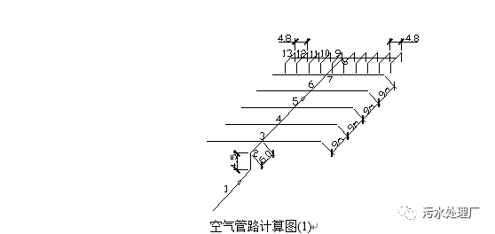 【气浮机】污水处理厂设计计算书一、工程概况 某城市污水处理厂,采用传统活性污泥法处理工艺,沉淀池型式为辐流式,曝气池采用鼓风曝气,进入曝气池的总污水量为50000m/d,污水的时变化系数为1.28,进入曝气池污水的BOD为215mg/L,处理出水总BOD20mg/L。 二、曝气池的设计 1.污水处理程度的计算 进入曝气池污水的BOD值(S)为215mg/L,计算去除率,首先按下式计算处理水中非溶解性BOD值,即 BOD=7.1bXC 式中C——处理水中悬浮固体浓度,取值为25mg/L; b——微生物自身氧化率,一般介于0.05~0.1之间,取值0.09; X——活性微生物在处理水中所占比例,取值0.4; 代入各值 BOD=7.1×0.09×0.4×25=6.39≈6.4 处理水中溶解性BOD值为: 20-6.4=13.6mg/L 去除率 =(215-13.6)/215=0.938≈0.94 2.曝气池的计算与各部位尺寸的确定 曝气池按BOD-污泥负荷法计算 (1) BOD-污泥负荷率的确定 拟定采用的BOD-污泥负荷率为0.3kgBOD/(kgMLSS·d)。但为稳妥计,按下式加以较核: N=KSf/ K值取0.0280 S=13.6mg/L =0.94 f=MLVSS/MLSS=0.75 代入各值 N=0.0280×13.6×0.75/0.94=0.30 kgBOD/(kgMLSS·d) 计算结果确证,取值0.3是适宜的。 (2) 确定混合液污泥浓度(X) 根据已确定的N值,查图4-7得相应的SVI值为100-120,取值120。 按下式确定混合液污泥浓度值X。对此r=1.2,R=50%,代入各值,得: X=R·r·10/[(1+R)SVI]=0.5×1.2×10/[(1+0.5)×120]=3333mg/L≈3300mg/L (3) 确定曝气池容积,按下式计算,即: V=QS/(NX) 代入各值: V=50000×215/(0.30×3300)=10858.59≈10859m (4) 确定曝气池各部位尺寸 设4组曝气池,每组容积为 10859/4=2715m 池深取4.2m,则每组曝气池的面积为 F=2715/4.2=646.43m 池宽取4.5m,B/H=4.5/4.2=1.07,介于1-2之间,符合规定。 池长: F/B=646.43/4.5=143.7 L/B=143.7/4.5=31.92>10,符合规定。 设三廊道式曝气池,廊道长: L1=L/3=143.7/3=47.9≈48m 取超高0.5m,则池总高度为 4.2+0.5=4.7m 在曝气池面对初次沉淀池和二次沉淀池的一侧,各设横向配水渠道,并在两池中部设纵向中间配水渠道与横向配水渠道相连接,在两侧横向配水渠道上设进水口,每组曝气池共有三个进水口。 在面对初次沉淀池的一侧(前侧),在每组曝气池的一端,廊道Ⅰ进水口处设回流污泥井,井内设污泥提升器,回流污泥由污泥泵站送入井内,由此通过空气提升器回流曝气池。 3.曝气系统的设计与计算 本设计采用鼓风曝气系统。 (1) 平均时需氧量的计算 O2=aQS+bVX 其中a=0.5;b=0.15 代入各值 O=0.5×50000(215-20)/1000+0.15×10859×2500/1000=8947.125kg/d=373kg/h (2) 最大时需氧量的计算 根据原始数据 k=1.28 代入各值: O=0.5×50000×1.28(215-20)/1000+0.15×10859×2500/1000=10312.125kg/d=429.67kg/h (3) 每日去除的BOD值 BOD=50000×(215-20)/1000=9750kg/d (4) 去除每kgBOD的需氧量 △O=8947.125/9750=0.92kgO/kgBOD (5) 最大时需氧量与平均时需氧量之比 O/ O=429.67/373=1.15 4.供气量的计算 采用网状膜型中微孔空气扩散器,敷设于距池底0.2m处,淹没水深4.0m,计算温度定为30℃。 水中溶解氧饱和度: C=9.17mg/L;C=7.63mg/L (1) 空气扩散器出口处的绝对压力(P)计算如下: P=1.013×10+9.8×10H =1.013×10+9.8×10×4.0 =1.405×10P (2) 空气离开曝气池面时,氧的百分比按下式计算: O=21(1-E)/[79+21(1-E)]×100% E——空气扩散器的氧转移效率,对网状膜型中微孔空气扩散器,取值12%。 代入E值,得: O=21(1-0.12)/[79+21(1-0.12)]×100%=18.96% (3) 曝气池混合液中平均氧饱和度(按最不利的温度条件考虑)按下式计算,即: C=C(P/2.026×10+O/42) 最不利温度条件按30℃考虑,代入各值,得: C=7.63×(1.405/2.026+18.96/42)=8.74mg/L (4) 换算为在20℃条件下,脱氧清水的充氧量,按下式计算,即: R=RC/[(··C-C)·1.024] 取值=0.82;=0.95;C =2.0;=1.0 代入各值,得: R=373×9.17/[0.82×(0.95×1.0×8.74-2.0)×1.024]=522kg/h 相应的最大时需氧量为: R=429.67×9.17/[0.82×(0.95×1.0×8.74-2.0)×1.024]=601 kg/h (5) 曝气池平均时供气量按下式计算,即: G=R/(0.3E)×100 代入各值,得: G=522/(0.3×12)×100=14500m/h (6) 曝气池最大时供气量 G=601/(0.3×12)×100=16695 m/h (7) 去除每kgBOD的供气量: 14500/9750×24=35.69m空气/kgBOD (8) 每m污水的供气量: 14500/50000×24=6.96 m空气/ m污水 (9) 本系统的空气总用量: 除采用鼓风曝气外,本系统还采用空气在回流污泥井提升污泥,空气量按回流污泥量的8倍考虑,污泥回流比R取值50%,这样提升污泥所需空气量为: 8×0.5×50000/24=8334m/h 总需气量: 16695+8334=25029 m/h 5.空气管系统计算 按附图所示曝气池平面图布置空气管道,在相邻的两个廊道的隔墙上设一根干管,共6根干管。在每根干管上设10对配气竖管,共20条配气竖管。全曝气池共设120条配气竖管。每根竖管的供气量为: 16695/120=139.125 m/h 曝气池平面面积为: 48×4.5×3×4=2592m 每个空气扩散器的服务面积按0.50 m计,则所需空气扩散器的总数为: 2592/0.50=5184个 为安全计,本设计采用5280个空气扩散器,每个竖管上安设的空气扩散器的数目为: 5280/120= 44个 每个空气扩散器的配气量为: 16695/5280=3.16 m/h 将已布置的空气管路及布设的空气扩散器绘制成空气管路计算图如下,用以计算。 空气管路计算图(1) 选择一条从鼓风机房开始的最远最长的管路作为计算管路。在空气流量变化处设计算节点,统一编号后列表进行空气管道计算。 空气干管和支管以及配气竖管的管径,根据通过的空气量和相应的流速按附录2加以确定。计算结果列入计算表中第6项。 空气管路的局部阻力损失,根据配件的类型按式R=RC/[(··C-C)·1.024]折算成当量长度损失l,并计算出管道的计算长度l+l(m),(l为管段长度)计算结果列入计算表中的第8、9两项。 空气管道的沿程阻力损失,根据空气管