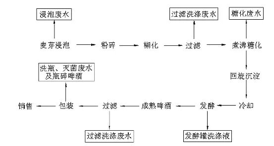 【气浮机】啤酒厂污水处理工艺详解啤酒污水属中高浓度有机污水,有很好的可生化性。啤酒污水中含有大量有机碳而氮源含量较少。在进行传统的生化处理中,其含氮量远远低于BOD:N=100:5(质量比)的要求,致使有些啤酒厂采用传统活性污泥法时,在不补充氮源情况下处理效果很差,甚至无法运行。要得到理想的处理结果,实现啤酒污水治理的环境效益和经济效益的统一,必须将两种或三种技术结合使用,这是解决啤酒污水污染问题的根本出路。 由图中可以看出,污水主要来源有:麦芽生产过程的洗麦水、浸麦水、发芽降温喷雾水、麦槽水、洗涤水、凝固物洗涤水;糖化过程的糖化、过滤洗涤水;发酵过程的发酵罐洗涤、过滤洗涤水;罐装过程洗瓶、灭菌及破瓶啤酒;冷却水和成品车间洗涤水;以及工厂员工的生活用水等等。