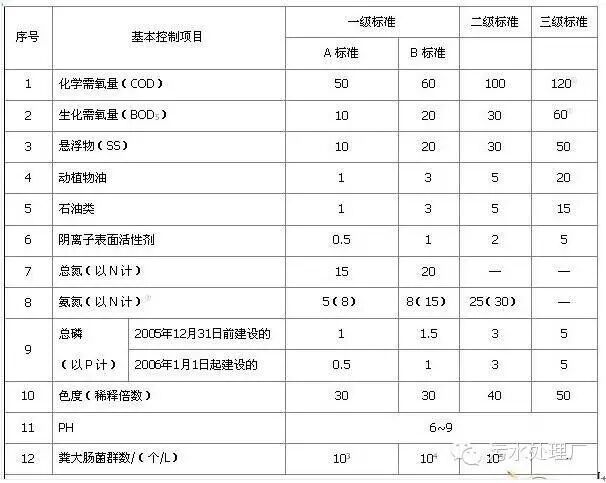 根据城镇污水处理厂排入地表水域环境功能和保护目标,以及污水处理厂的处理工艺,将基本控制项目的常规污染物标准值分为一级标准、二级标准、三级标准。一级标准分为A标准和B标准。部分一类污染物和选择控制项目不分级。
