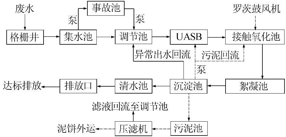 2 ÎÛË®´¦Àí¹¤ÒÕ 2.1 ¹¤ÒÕÑ¡Ôñ ¡¡¡¡ÒûÁÏ·ÏË®µÄ´¦Àí¹¤Òպܶ࣬ÆäÖÐÑáÑõ+ºÃÑõ×éºÏ¹¤ÒÕÓ¦ÓÃ×î¶à¡£¸ÃÒûÁÏ·ÏË®µÄÓлúÎïŨ¶È¸ß£¬¿ÉÉú»¯ÐԺã¬ËáÐÔ»º³åÈÜÒº¶à¡£²ÉÓÃUASB+ÉúÎï½Ó´¥Ñõ»¯·¨×éºÏ¹¤ÒÕ¿ÉÓÐЧȥ³ý·ÏË®ÖеÄÎÛȾÎͬʱ¾ß±¸½Ï¸ßµÄ¿¹³å»÷¸ººÉÄÜÁ¦£¬È·±£¸ßЧÎȶ¨µÄ´¦ÀíЧ¹û¡£ 2.2 ¹¤ÒÕÁ÷³Ì ¡¡¡¡¾ßÌ幤ÒÕÁ÷³Ì¼ûͼ 1¡£ ¡¡¡¡·ÏË®¾¹ý¸ñÕ¤¾®È¥³ý½Ï´óµÄÐü¸¡ÎƯ¸¡Î½øÈ뼯ˮ³Ø¡£¸ßŨ¶ÈÅÅÁϺÍÇåÏ´É豸µÄÇ¿Ëᡢǿ¼î·ÏË®ÓÉÌáÉý±Ã±ÃÈëʹʳأ»Õý³£·ÏË®Ôò±ÃÈëµ÷½Ú³Ø¡£¾¹ýµ÷½Ú³Ø¾ùÖÊÔÈÁ¿ºó£¬ÔÙÓÉÌáÉý±ÃÌáÉýÖÁUASB£¬ÆäÖд󲿷ÖÓлúÎï±»ÑáÑõ·Ö½âΪÕÓÆøÅųö¡£UASB³öË®×ÔÁ÷½øÈë½Ó´¥Ñõ»¯³Ø£¬¾ºÃÑõ´¦Àíºó½øÈëÐõÄý·´Ó¦³Ø£¬µ±ºÃÑõ´¦Àí³öË®Ò쳣ʱ£¬ÔÚÐõÄý·´Ó¦³ØÖÐͶ¼Ó»ìÄý¼Á¡¢ÐõÄý¼Á£¬ÒÔ±£Ö¤´¦ÀíЧ¹û¡£½Ó׎øÈë¶þ³Á³Ø½øÐÐÄàË®·ÖÀ룬ÆäÖÐÎÛÄà¸ù¾ÝÐèÒª»ØÁ÷ÖÁÉú»¯·´Ó¦ÏµÍ³»ò±»ÅÅÖÁÎÛÄà³Ø£»Èô³öË®Ò쳣ʱ£¬¶þ³Á³Ø³öË®»ØÁ÷ÖÁµ÷½Ú³ØÖØÐ½øÐд¦Àí£¬³öË®Õý³£Ôò×ÔÁ÷½øÈëÇåË®³Ø£¬×îºóÁ÷ÈëÅŷſڴï±êÅÅ·Å¡£ÎÛÄà³ØÎÛÄà¾Ñ¹ÂË»úѹÂ˺ó£¬ÂËÒº»ØÁ÷ÖÁµ÷½Ú³Ø´¦Àí£¬Äà±ýÍâÔËÖÁÓÐ×ÊÖʵ¥Î»´¦Öã»Ê¹ʳØÊ¹ʷÏË®¸ù¾ÝÔËÐÐÇé¿öͨ¹ýÌáÉý±Ã·ÖÅú±ÃÈëµ÷½Ú³Ø½øÐлìºÏ´¦Àí¡£ 2.3 Ö÷Òª¹¹ÖþÎï¼°Éè¼Æ²ÎÊý ¡¡¡¡(1) ¸ñÕ¤¾®¡£ÓÃÓÚÀ¹½Ø½Ï´óµÄÐü¸¡ÎïºÍƯ¸¡Î±£Ö¤ºóÐøÉèÊ©µÄÕý³£ÔËÐС£¸ñÕ¤¾®³ß´çΪ4.0 m¡Á1.2 m¡Á5.0 m£¬Ñ¡ÓÃ1̨BLQ-1200»úе¸ñÕ¤£¬Õ¤Ìõ¼ä϶Ϊ5 mm£¬¹¦ÂÊ0.75 kW¡£ ¡¡¡¡(2) ¼¯Ë®³Ø¡£ÓÃÓÚ´¢Ë®¡¢»º³å×÷Óã¬Õý³£Çé¿öϽ«·ÏË®³éËÍÖÁµ÷½Ú³Ø£»µ±ÓиßŨ¶ÈÅÅÁÏ»òÇ¿Ëᡢǿ¼îÇåÏ´Ë®ÅÅ·Åʱ£¬Í¨¹ý×Ô¿ØÏµÍ³Çл»·§ÃŽ«·ÏË®³éÖÁʹʳء£¼¯Ë®³Ø³ß´çΪ5.3 m¡Á7.4 m¡Á5.0 m£¬ÓÐЧÈÝ»ý60 m3£¬Ë®Á¦Í£Áôʱ¼ä(HRT)Ϊ0.9 h¡£Ñ¡ÓÃ2̨ZS80-65-125/5.5ÌáÉý±Ã(Q=100 m3/h£¬H=13 m£¬P=5.5 kW)£¬1ÓÃ1±¸¡£ ¡¡¡¡(3) µ÷½Ú³Ø¡£Éè¼Æ³ß´çΪ10 m¡Á12 m¡Á5.0 m£¬ÓÐЧÈÝ»ý533 m3£¬HRTΪ8 h¡£ÅäÖÃ1Ì×Ëá¼î¼Óҩϵͳ£¬ÒÔÎȶ¨·ÏË®pHÔÚ6.5~8.5£»ÔÚ¾àÀë³Øµ×10 cm´¦ÉèÖÃ1̨MA0.85/8-260-740DZˮ½Á°è»úºÍ1Ì×´©¿×ÆØÆøÏµÍ³£¬ÓÃÓÚ¾ù»¯Ë®ÖÊ¡¢Ë®Á¿£»Ñ¡ÓÃZS65-50-125/3.0ÌáÉý±Ã(Q=50 m3/h£¬H=13 m£¬P=3.0 kW£¬1ÓÃ1±¸)½«·ÏË®ÌáÉýµ½UASBµÄÂö³å¹Þ¡£ ¡¡¡¡(4) ʹʳء£³ß´çΪ10.7 m¡Á4.3 m¡Á5.0 m£¬ÓÐЧÈÝ»ý202 m3£¬HRTΪ3.0 h¡£ÅäÖÃ1Ì×Ëá¼î¼Óҩϵͳµ÷½Ú·ÏË®pH£»ÔÚ¾àÀë³Øµ×10 cm´¦ÉèÖÃ1Ì×´©¿×ÆØÆøÏµÍ³¾ù»¯Ë®ÖÊ¡£¸ù¾ÝÎÛË®´¦ÀíϵͳµÄÔËÐÐÇé¿ö£¬Ñ¡ÓÃMS160/0.75ÌáÉý±Ã(Q=9.6 m3/h£¬H=13.8 m£¬P=0.75 kW£¬1ÓÃ1±¸)½«Ê¹ʷÏË®ÉÙÁ¿·ÖÅú±ÃÈëµ÷½Ú³Ø½øÐлìºÏÏ¡ÊÍ´¦Àí¡£ ¡¡¡¡(5) UASB¡£ÉèÖÃ2×ù£¬µ¥×ù³ß´çΪ10 m¡Á7.0 m¡Á7.0 m£¬ÓÐЧÈÝ»ý455 m3£¬HRTΪ17 h¡£Ã¿×ùUASBÓɽøË®Åäˮϵͳ¡¢·´Ó¦Çø¡¢ÈýÏà·ÖÀëÆ÷¡¢¼¯ÆøÊÒ¼°´¦ÀíË®Åųöϵͳ×é³É¡£½øË®ÅäˮϵͳÓÉÂö³å·¢ÉúÆ÷Óë¸ßЧÂö³å²¼Ë®Æ÷×é³É£¬Í¨¹ýÂö³å²¼Ë®¿Éʹ·´Ó¦ÇøµÄÎÛÄà²ãʼÖÕ´¦ÓÚÐü¸¡Ì¬£¬ÓÐÀûÓÚ·ÏË®Óë·´Ó¦Æ÷ÖÐÑáÑõ΢ÉúÎïµÄ³ä·Ö»ìºÏ£¬ÓÐЧÌá¸ßUASBÑáÑõ½µ½âÓлúÎïµÄЧÂÊ¡£ÔÚÇåË®ÇøÉèÖÃÈýÏà·ÖÀëÆ÷£¬·ÖÀëÆø¡¢Ë®¡¢Ä࣬ÕÓÆøÍ¨¹ý¼¯ÆøÊÒ¡¢ÆøÌåÊÕ¼¯ÏµÍ³ÊäËÍÖÁȼÉÕ»ð¾æµãȼ£¬ÉÏÇåÒº´Ó³ÁµíÇøÉϲ¿Åųöϵͳ½øÈë½Ó´¥Ñõ»¯³Ø£¬ÎÛÄàÑØ×ÅÈýÏà·ÖÀëÆ÷б±Ú·µ»ØÖÁ·´Ó¦Çø¡£ ¡¡¡¡(6) ½Ó´¥Ñõ»¯³Ø¡£ÉèÖÃ2×ù£¬µ¥×ù³ß´çΪ10.0 m¡Á8.4 m¡Á5.0 m£¬ÓÐЧÈÝ»ý371 m3£¬HRTΪ11 h£¬Éè¼ÆÆøË®±È12:1£¬ÈܽâÑõÖÊÁ¿Å¨¶ÈΪ2~4 mg/L¡£ÎªÁË·ÀÖ¹·ÏË®ÔÚ´¦Àí¹ý³ÌÖз¢Éú¡°¶ÌÁ÷¡±ÏÖÏó£¬Ã¿×ù½Ó´¥Ñõ»¯³ØÉèÖÃ2µÀµ¼Á÷ǽ£¬±£Ö¤·ÏË®´¦ÀíµÄË®Á¦Í£Áôʱ¼ä¡£Ñ¡ÓÃSSR-100Â޴Ĺķç»ú(Q=6.71 m3/min£¬H=5.0 m£¬P=7.5 kW£¬2ÓÃ1±¸)×÷Ϊ³äÑõÉ豸£¬Í¨¹ýÀë³Øµ×10 cm´¦ÉèÖõÄ΢¿×ÆØÆøÏµÍ³£¬¿ÉÓÐЧÌá¸ßÈܽâÑõÔÚ·ÏË®ÖеĴ«ÖÊЧÂÊ£¬±£Ö¤ÌîÁÏÔØÌåÉÏÉúÎïĤµÄÐèÑõÁ¿£¬Î¬³ÖÎȶ¨¸ßЧµÄ´¦ÀíЧÂÊ¡£ ¡¡¡¡(7) ÐõÄý³Ø¡£µ±½Ó´¥Ñõ»¯³Ø³öˮˮÖÊÒ쳣ʱ£¬ÔÚÐõÄý³ØÍ¶¼ÓPAC¡¢PAM£¬ÒÔ±£Ö¤¶þ³Á³ØµÄ³ÁµíЧÂÊ¡£Æä³ß´çΪ1.0 m¡Á1.5 m¡Á4.5 m£¬ÓÐЧÈÝ»ý6.3 m3£¬HRTΪ6 min¡£ ¡¡¡¡(8) ¶þ³Á³Ø¡£Éè¼Æ·øÁ÷ʽ³Áµí³ØÖÐÐĽøË®£¬ËÄÖܳöË®£¬³ß´çΪD 10 m¡Á4.5 m£¬±íÃæ¸ººÉ0.85 m3/(m2¡¤h)£¬HRTΪ3.5 h¡£ÅäÖÃ1̨ÖÐÐÄ´«¶¯XZG-10¹ÎÄà»ú£¬Ôڳص×ÉèÖÃÅÅÄà¹Ü£¬Í¨¹ýSP4-1150ÎÞ¶ÂÈûÎÛÄà±Ã(Q=72 m3/h£¬H=9.0 m£¬P=5.5 kW£¬1ÓÃ1±¸)½«Ê£ÓàÎÛÄà»ØÁ÷ÖÁÉú»¯ÏµÍ³»òÅÅÖÁÎÛÄà³Ø¡£ÁíÍâÔÚ¼¯Ë®²ÛÉèÖÃ1ÌõÁ¬½ÓÖÁµ÷½Ú³ØµÄ³¬Ô½¹ÜµÀ£¬µ±³öË®²»´ï±êʱ£¬»ØÁ÷²»´ï±ê³öË®ÖÁµ÷½Ú³Ø½øÐÐÖØÐ´¦Àí¡£ ¡¡¡¡(9) ÎÛÄà³Ø¡£³ß´çΪ4.0 m¡Á4.0 m¡Á4.0 m£¬ÓÐЧÈÝ»ý52 m3¡£Ñ¡ÓÃ6661T3-344-CÆø¶¯¸ôĤ±Ã¡¢W-0.9/8¿ÕÆøÑ¹Ëõ»ú