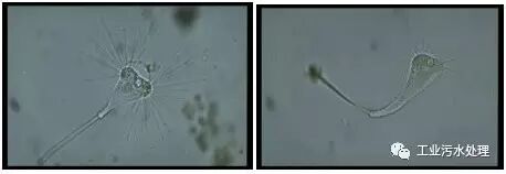 锤吸管虫形态如下图: 当活性污泥中这类固着型原生动物占有明显的生长优势时,表明活性污泥系统状态比较良好。此时活性污泥沉降性良好、上清液清澈、液面无浮渣、二沉出水清澈且不带解絮颗粒。 上述几种固着型纤毛虫,虽然总体上都说明活性污泥处理系统良好,但依然存在着些许差别,例如: 小口钟虫多生长在负荷略微偏高的污水系统中,而沟钟虫则出现在有机负荷非常低的系统,此时污泥甚至已经开始发生解体。 累枝虫、扉门虫及锤吸管虫的出现,往往预示着污水系统有机负荷偏低,且系统已经超过了最佳的状态。当活性污泥开始发生解体时,往往也能观察到累枝虫、扉门虫、锤吸管虫的大量存在。 另外,要判断污水处理系统是否处于理想的状态,单凭观察到固着型纤毛虫还不够,还需要结合污泥絮体本身形态,以及其他各类指示生物种类的变化来进行综合判断,这一点希望广大站长和技术员们留意,并在实际工作中观察体会。 |