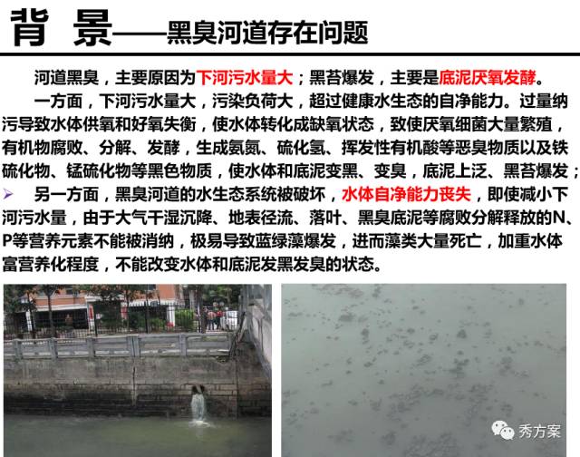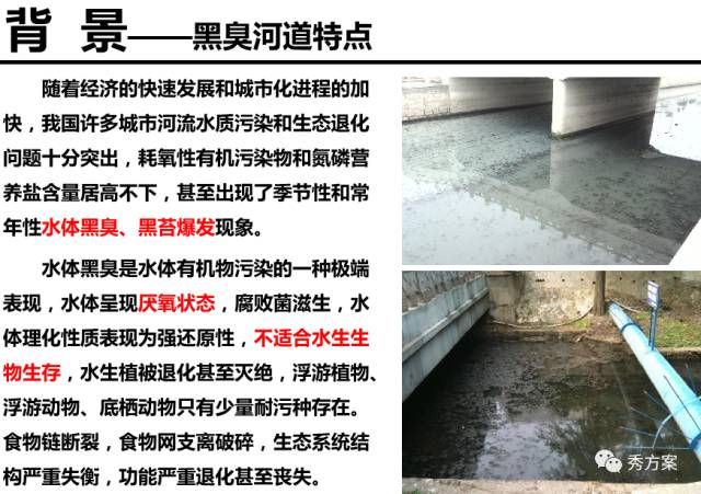 水体黑臭是水体有机物污染的一种极端表现,水体呈现厌氧状态,腐败菌滋生,水体理化性质表现为强还原性,不适合水生生物生存,水生植被退化甚至灭绝,浮游植物、浮游动物、底栖动物只有少量耐污种存在。食物链断裂,食物网支离破碎,生态系统结构严重失衡,功能严重退化甚至消失。